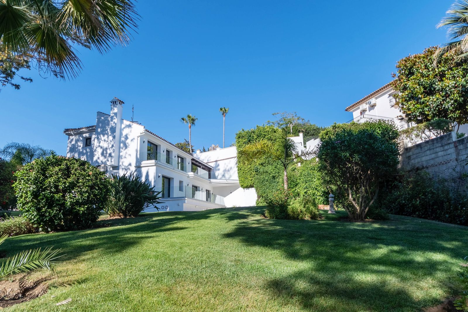The house has two separate entrances, two covered parking spaces with a pergola, and a garage for one car