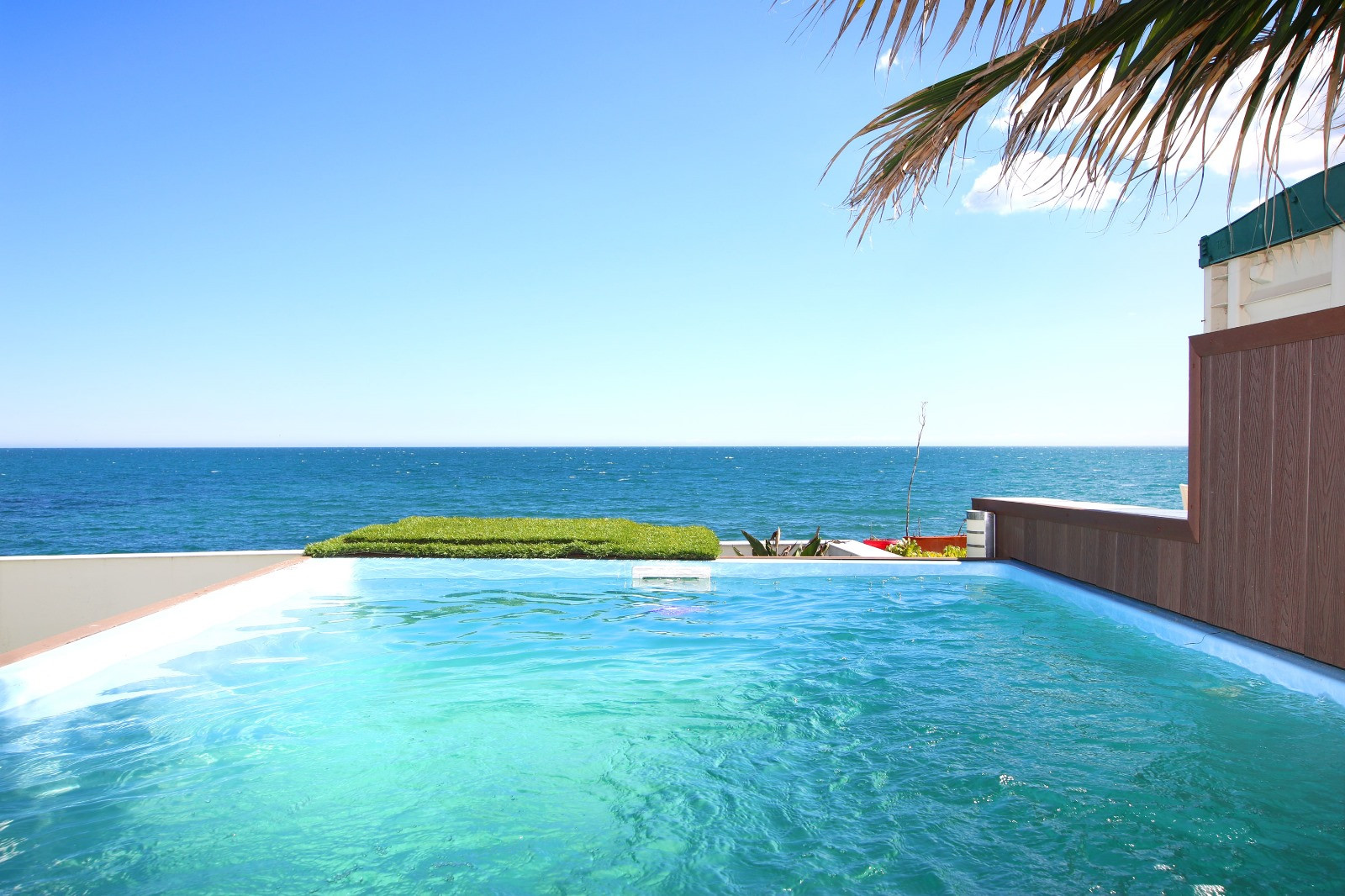 A front garden facing the sea, where you’ll find a private integrated pool (4.75 x 2.5 x 1.4 m, 2025), perfect for enjoying the coastal surroundings.