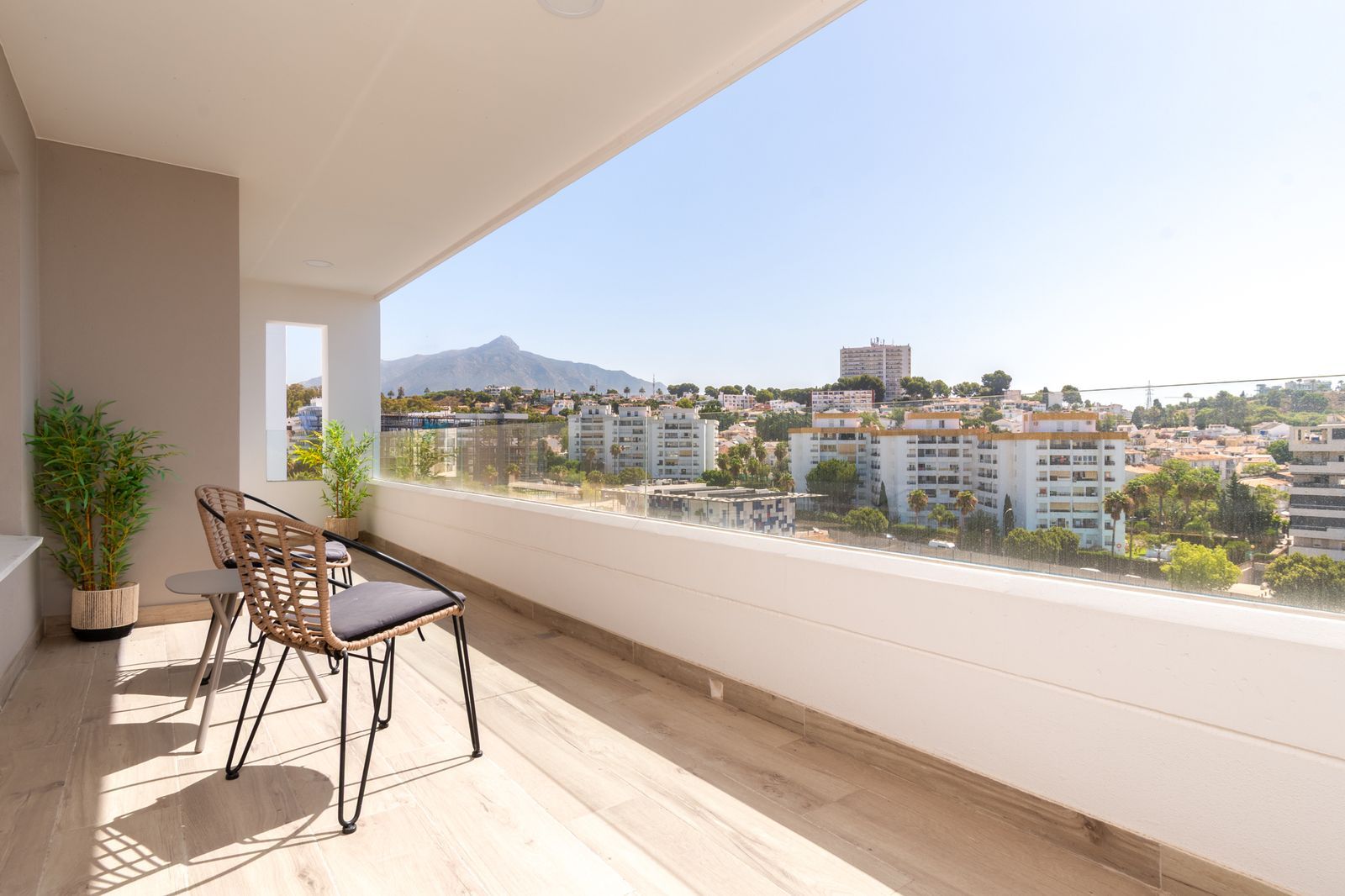 With a south/southeast-facing orientation, the apartment is filled with natural light throughout the day. Step out onto your private terrace and enjoy your morning coffee with panoramic views of La Concha Mountain and even a glimpse of the Mediterranean Sea.
