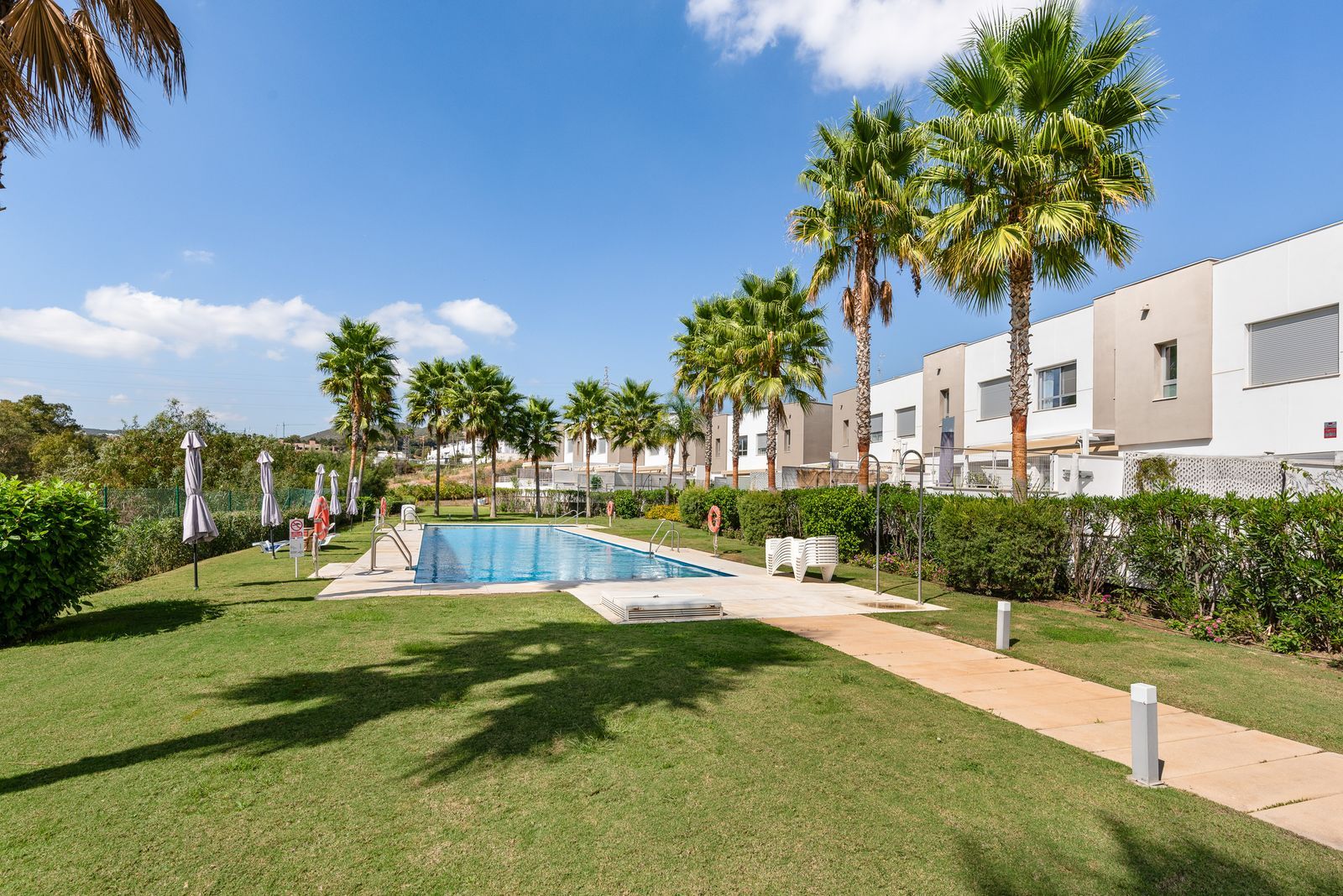 The community boasts meticulously maintained gardens and a large swimming pool, providing a tranquil environment for residents to enjoy. Additionally, the development is known for its secure and peaceful setting, with easy access to the Estepona Golf course and other recreational activities.